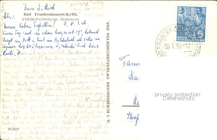 72361868 alte Postkarte Bad Frankenhausen FDGB-Ferienheim Hoheneck postalisch gelaufen Erhaltung siehe scans KatCode: 11110016065003