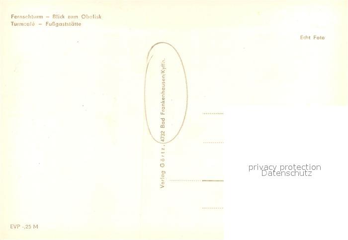 73737382 Bad Frankenhausen Fernsehturm – Obelisk-Turmcafe – Fussgaststaette postalisch nicht gelaufen Erhaltung siehe scans [LiesaD40] KatCode: 11110016065003
