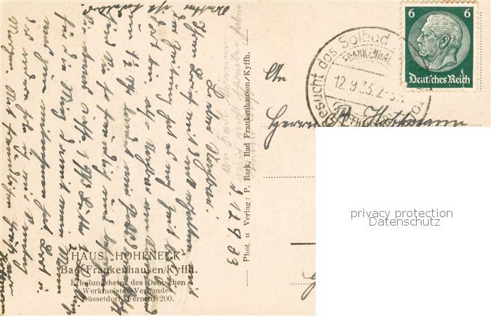 73822199 alte Postkarte Bad Frankenhausen Haus Hoheneck Lesezimmer postalisch gelaufen Erhaltung siehe scans [WerneD78] KatCode: 11110016065003