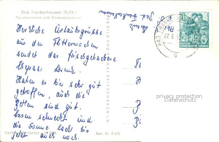 72432834 alte Postkarte Bad Frankenhausen Hausmannsturm und Kindersanatorium postalisch gelaufen Erhaltung siehe scans KatCode: 11110016065003