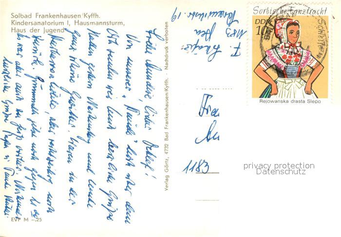73750234 alte Postkarte Bad Frankenhausen Kindersanatorium I Hausmannsturm Haus der Jugend postalisch gelaufen Erhaltung siehe scans [FriedD77] KatCode: 11110016065003