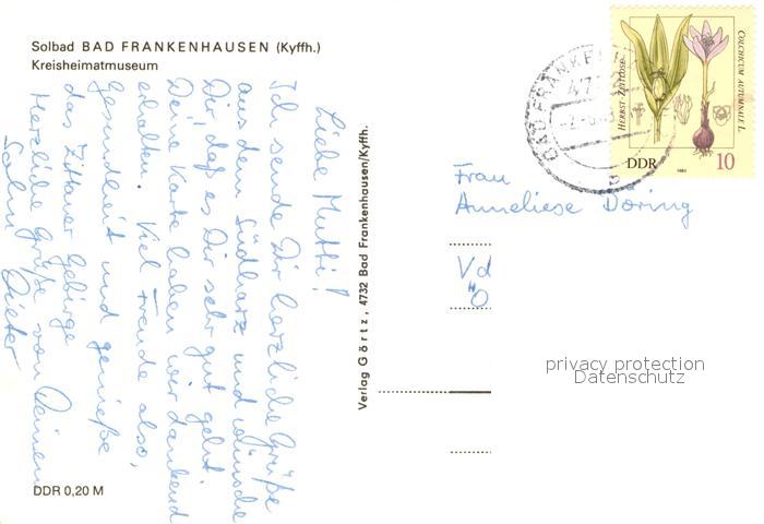 72920392 alte Postkarte Bad Frankenhausen Kreisheimatmuseum postalisch gelaufen Erhaltung siehe scans [LiesaD40] KatCode: 11110016065003