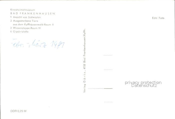 72368353 Bad Frankenhausen Kreisheimatmuseum Gipskristalle Wiesensteppe-Raum III postalisch nicht gelaufen Erhaltung siehe scans KatCode: 11110016065003