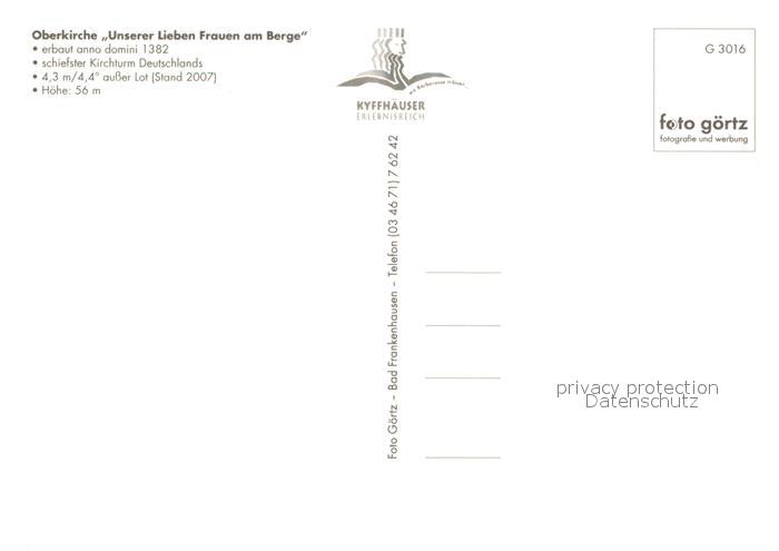 73270722 Bad Frankenhausen Oberkirche schiefster Kirchturm Deutschlands postalisch nicht gelaufen Erhaltung siehe scans [KathaD81] KatCode: 11110016065003
