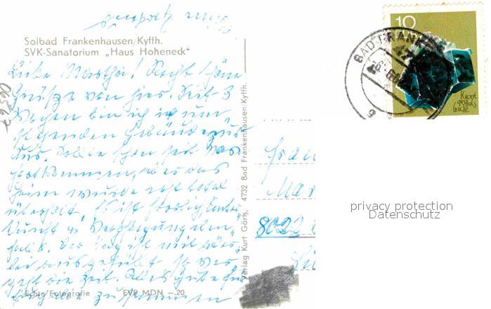 72633749 alte Postkarte Bad Frankenhausen Solbad SVK Sanatorium Haus Hoheneck postalisch gelaufen Erhaltung siehe scans [FriedD77] KatCode: 11110016065003