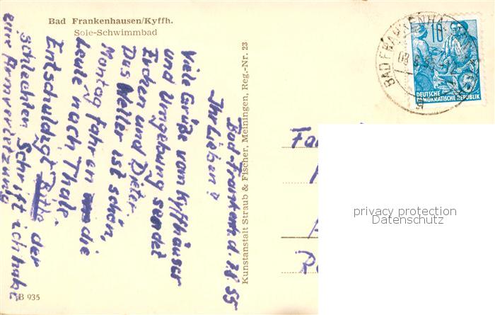 73800077 alte Postkarte Bad Frankenhausen Sole Schwimmbad postalisch gelaufen Erhaltung siehe scans [FriedD77] KatCode: 11110016065003