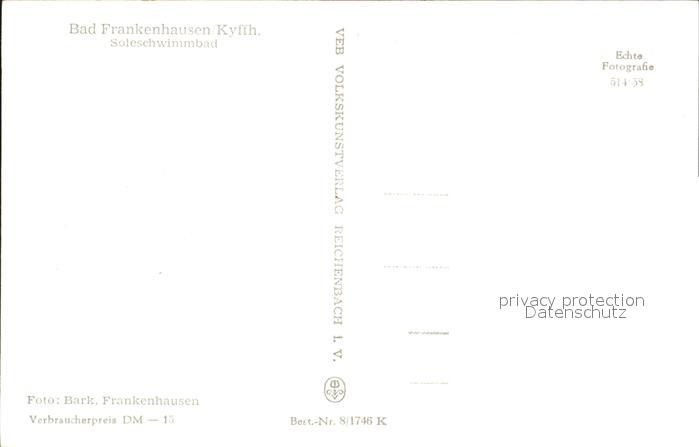 72029669 Bad Frankenhausen Soleschwimmbad postalisch nicht gelaufen Erhaltung siehe scans KatCode: 11110016065003