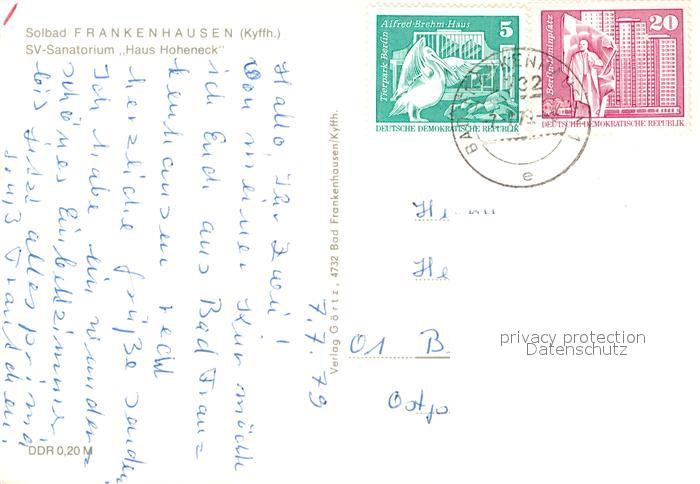 73335106 alte Postkarte Bad Frankenhausen SV Sanatorium Haus Hoheneck postalisch gelaufen Erhaltung siehe scans [WerneD78] KatCode: 11110016065003