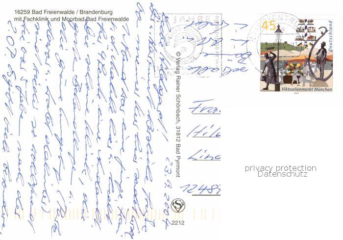 72691380 alte Postkarte Bad Freienwalde Kurfuerstenbrunnen Klinik Rathaus Schloss Kurmittelhaus Bahnhof Baasee Hauptstrasse postalisch gelaufen Erhaltung siehe scans [FriedD77] KatCode: 11110012064044