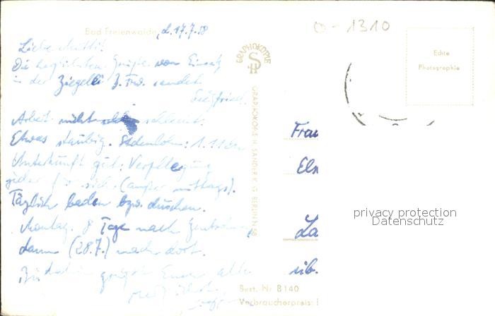 71930362 alte Postkarte Bad Freienwalde Kurhaus postalisch gelaufen Erhaltung siehe scans KatCode: 11110012064044
