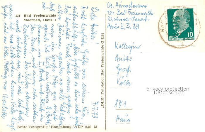 73751172 alte Postkarte Bad Freienwalde Moorbad Haus I postalisch gelaufen Erhaltung siehe scans [WerneD78] KatCode: 11110012064044