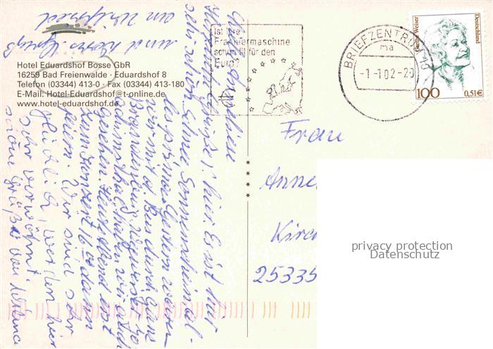 74152830 alte Postkarte Bad Freienwalde Oder Brandenburg Hotel Eduardshof Freiterrasse Kanal postalisch gelaufen Erhaltung siehe scans [WerneD78] KatCode: 11110012064044