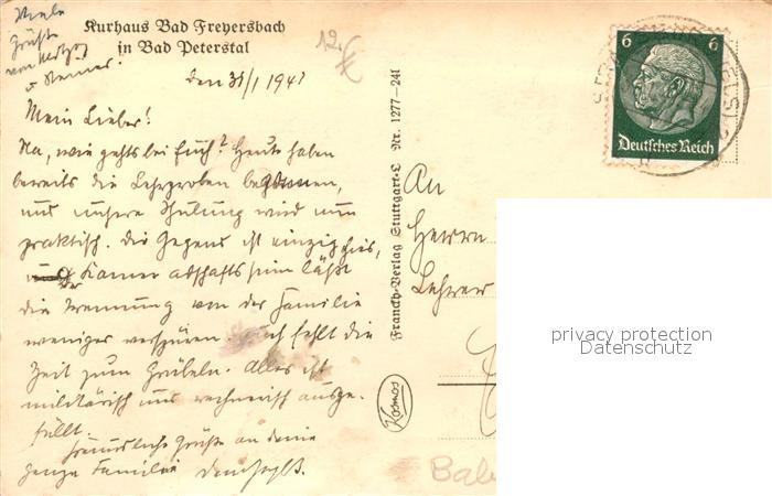 43505376 alte Postkarte Bad Freyersbach Schwarzwald Kurhaus Hirzighof postalisch gelaufen Erhaltung siehe scans [KathaD81] KatCode: 11110008317008