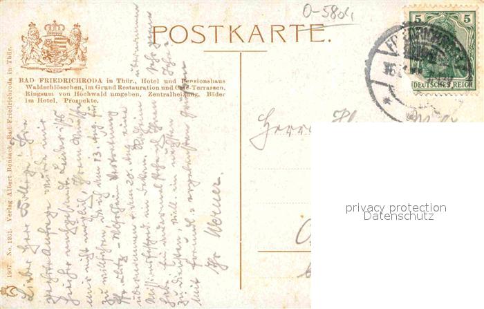 42642358 alte Postkarte Bad Friedrichroda Hotel-Pensionshaus Waldschloesschen Kuenstlerkarte postalisch gelaufen Erhaltung siehe scans [PaolaD17] KatCode: 11110016067019