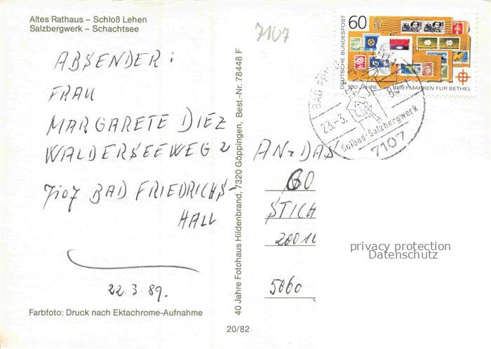 74051039 alte Postkarte Bad Friedrichshall Altes Rathaus Schloss Lehen Salzbergwerk Schachtsee postalisch gelaufen Erhaltung siehe scans [FriedD77] KatCode: 11110008125005