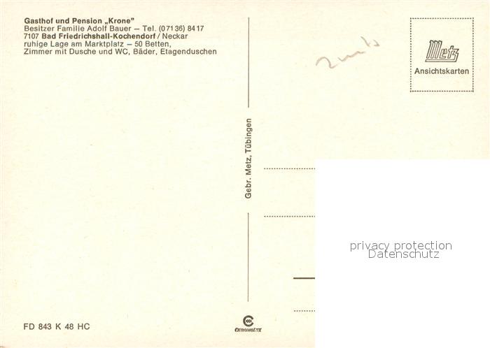 73651827 Bad Friedrichshall Gasthof Pension Krone Restaurant Panorama Neckar Binnenschifffahrt postalisch nicht gelaufen Erhaltung siehe scans [FriedD77] KatCode: 11110008125005