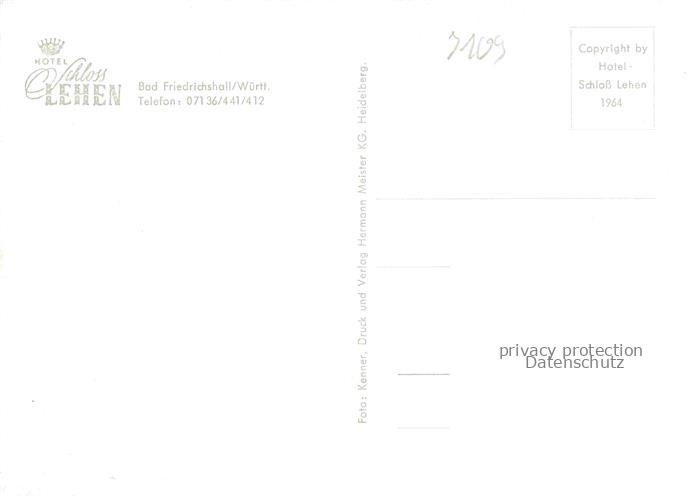 74051104 Bad Friedrichshall Hotel Schloss Lehen postalisch nicht gelaufen Erhaltung siehe scans [FriedD77] KatCode: 11110008125005