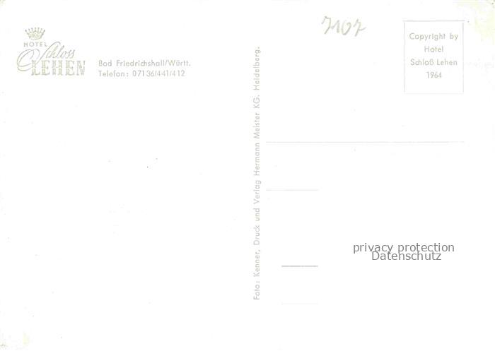 74051026 Bad Friedrichshall Hotel Schloss Lehen Restaurant postalisch nicht gelaufen Erhaltung siehe scans [FriedD77] KatCode: 11110008125005