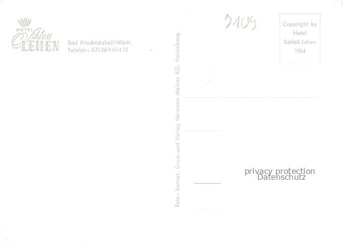 74051106 Bad Friedrichshall Hotel Schloss Lehen Restaurant postalisch nicht gelaufen Erhaltung siehe scans [FriedD77] KatCode: 11110008125005