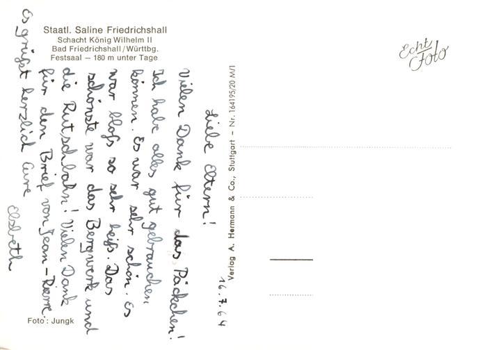 73892768 Bad Friedrichshall Staatl Saline Friedrichshall Schacht Koenig Wilhelm II Festsaal Eingang Kanzel Grotte der Hl Barbara postalisch nicht gelaufen Erhaltung siehe scans [FriedD77] KatCode: 11110008125005