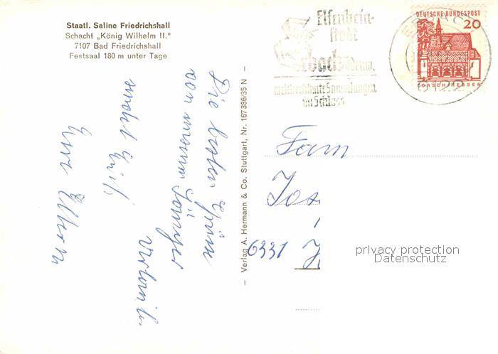 72902786 alte Postkarte Bad Friedrichshall Staatliche Saline Schacht Koenig Wilhelm II. postalisch gelaufen Erhaltung siehe scans [AndreD76] KatCode: 11110008125005