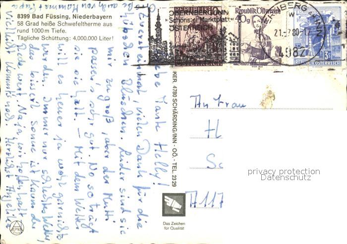 72578712 alte Postkarte Bad Fuessing postalisch gelaufen Erhaltung siehe scans [LiesaD40] KatCode: 11110009275116