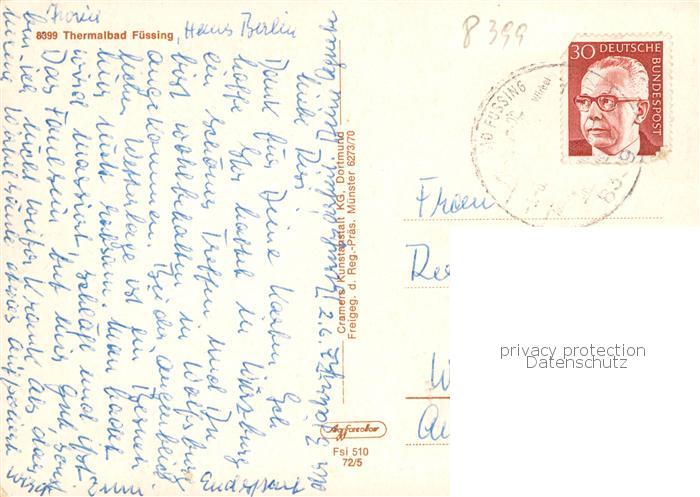 73866647 alte Postkarte Bad Fuessing Ansicht mit Thermalbad postalisch gelaufen Fliegeraufnahme Erhaltung siehe scans [FriedD77] KatCode: 11110009275116