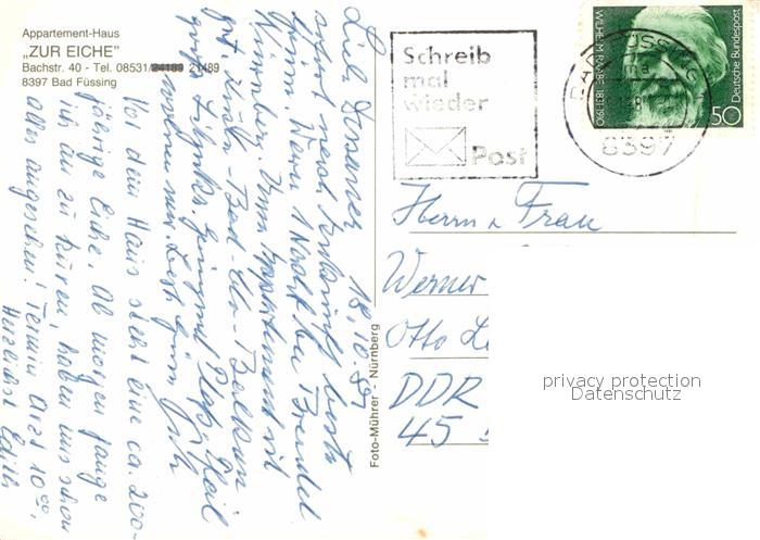 72797085 alte Postkarte Bad Fuessing Appartement Haus Zur Eiche postalisch gelaufen Erhaltung siehe scans [LiesaD40] KatCode: 11110009275116