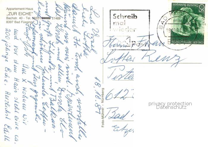 72797126 alte Postkarte Bad Fuessing Appartement Haus Zur Eiche postalisch gelaufen Erhaltung siehe scans [LiesaD40] KatCode: 11110009275116