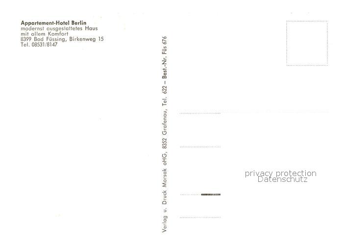 73609420 Bad Fuessing Appartement Hotel Berlin Foyer postalisch nicht gelaufen Erhaltung siehe scans [FriedD77] KatCode: 11110009275116