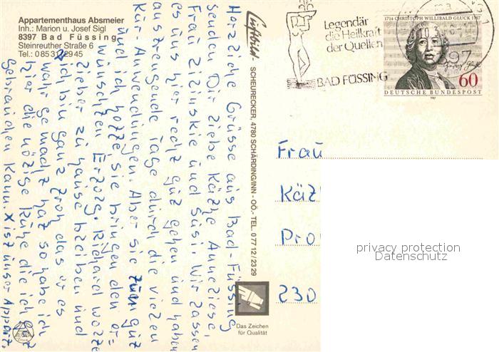 72855760 alte Postkarte Bad Fuessing Appartementhaus Absmeier postalisch gelaufen Erhaltung siehe scans [AndreD76] KatCode: 11110009275116