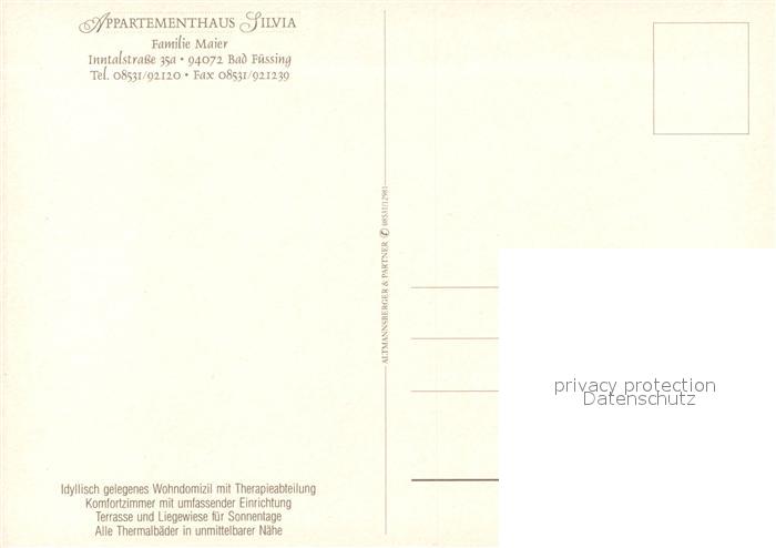 73124193 Bad Fuessing Appartementhaus Silvia postalisch nicht gelaufen Erhaltung siehe scans [LiesaD40] KatCode: 11110009275116