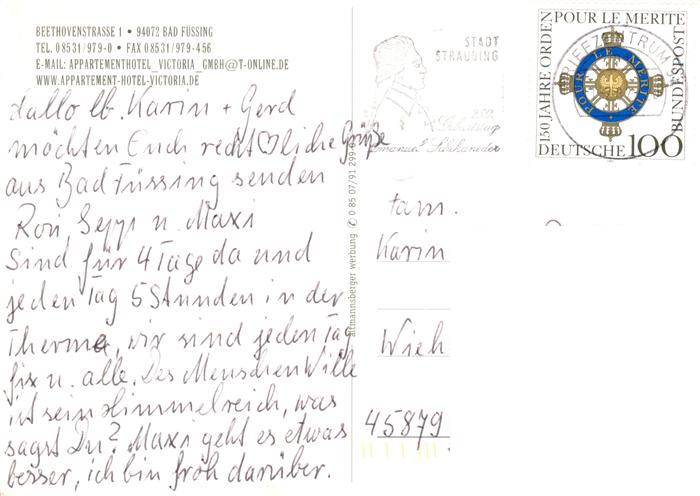 73880600 alte Postkarte Bad Fuessing Appartementhotel Victoria Zimmer postalisch gelaufen Erhaltung siehe scans [WerneD78] KatCode: 11110009275116