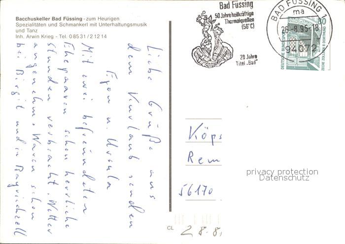 72291060 alte Postkarte Bad Fuessing Bacchuskeller postalisch gelaufen Erhaltung siehe scans KatCode: 11110009275116
