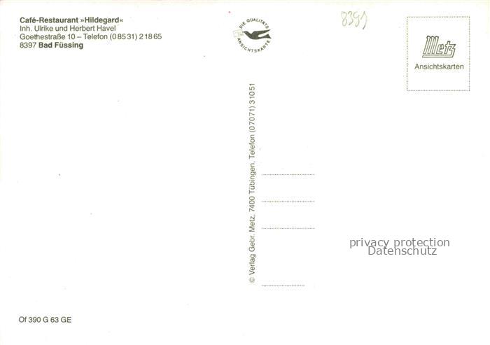74049551 BAD FuessING Café Restaurant Hildegard Gastraeume postalisch nicht gelaufen Erhaltung siehe scans [FriedD77] KatCode: 11110009275116