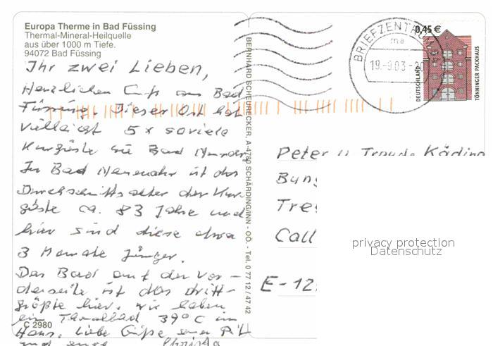 72694559 alte Postkarte Bad Fuessing Europa Therme Thermalbad postalisch gelaufen Erhaltung siehe scans [FriedD77] KatCode: 11110009275116