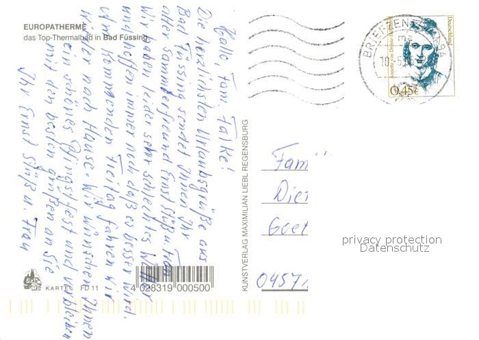 73101013 alte Postkarte Bad Fuessing Europatherme Details postalisch gelaufen Erhaltung siehe scans [WerneD78] KatCode: 11110009275116