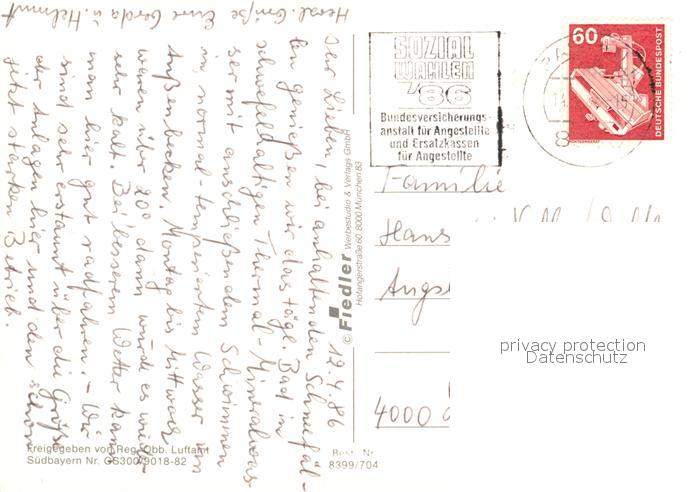 73110500 alte Postkarte Bad Fuessing Fliegeraufnahme postalisch gelaufen Erhaltung siehe scans [NatalD47] KatCode: 11110009275116