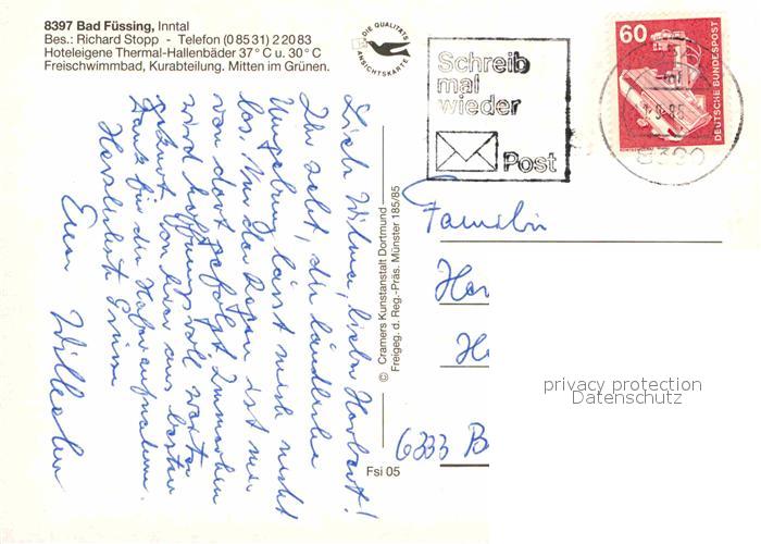 72915975 alte Postkarte Bad Fuessing Fliegeraufnahme Inntal postalisch gelaufen Erhaltung siehe scans [LiesaD40] KatCode: 11110009275116