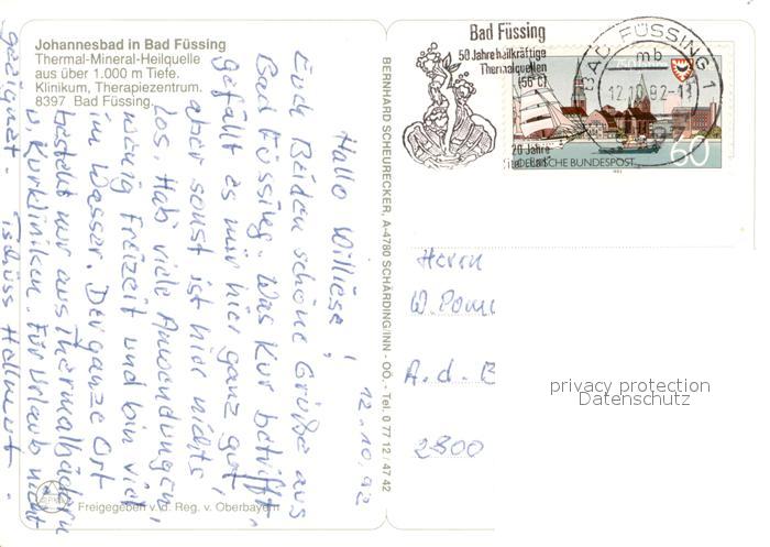 73720726 alte Postkarte Bad Fuessing Fliegeraufnahme Johannesbad postalisch gelaufen Erhaltung siehe scans [LiesaD40] KatCode: 11110009275116