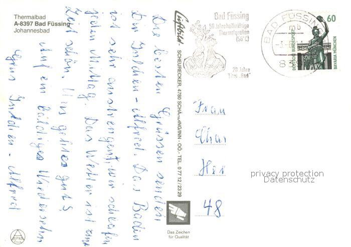 73111941 alte Postkarte Bad Fuessing Fliegeraufnahme Johannesbad postalisch gelaufen Erhaltung siehe scans [NatalD47] KatCode: 11110009275116