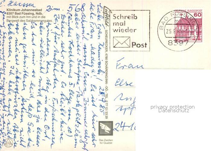 73013544 alte Postkarte Bad Fuessing Fliegeraufnahme Johannesbad postalisch gelaufen Erhaltung siehe scans [NatalD47] KatCode: 11110009275116