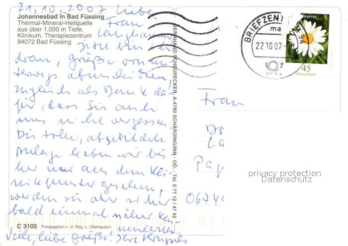 72946819 alte Postkarte Bad Fuessing Fliegeraufnahme Johannesbad postalisch gelaufen Erhaltung siehe scans [KathaD81] KatCode: 11110009275116