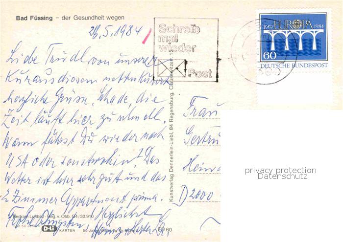 72774789 alte Postkarte Bad Fuessing Fliegeraufnahme Kirche postalisch gelaufen Erhaltung siehe scans [AndreD76] KatCode: 11110009275116
