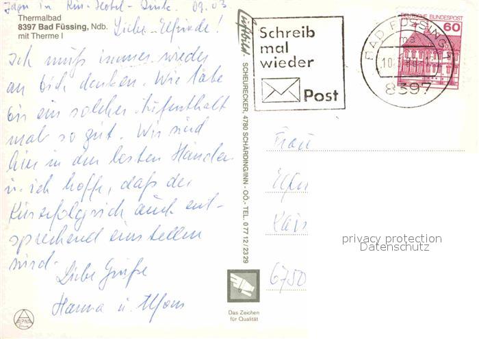 72758895 alte Postkarte Bad Fuessing Fliegeraufnahme mit Therme I postalisch gelaufen Erhaltung siehe scans [WerneD78] KatCode: 11110009275116