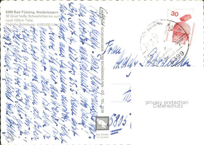 72581821 alte Postkarte Bad Fuessing Fliegeraufnahme Schwefeltherme postalisch gelaufen Erhaltung siehe scans [LiesaD40] KatCode: 11110009275116