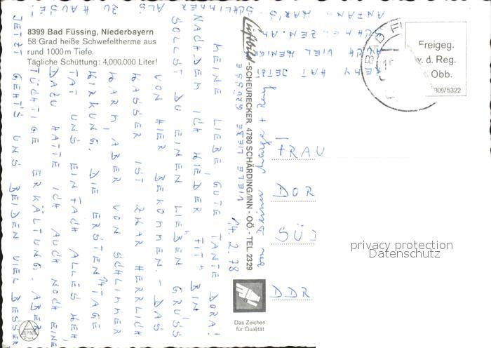72533506 alte Postkarte Bad Fuessing Fliegeraufnahme Schwefeltherme Bruecke Schwimmbad postalisch gelaufen Erhaltung siehe scans [WerneD78 kt116box] KatCode: 11110009275116