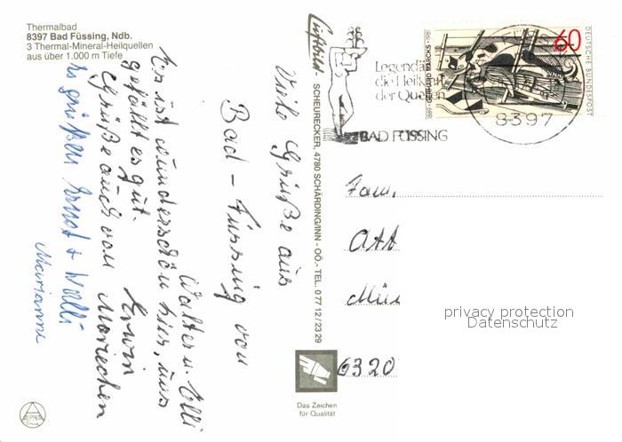 72770133 alte Postkarte Bad Fuessing Fliegeraufnahme Thermalbad postalisch gelaufen Erhaltung siehe scans [AndreD76] KatCode: 11110009275116