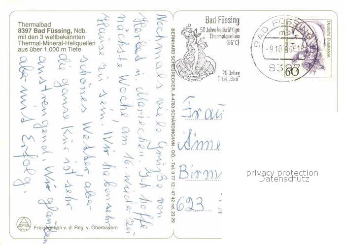 72620549 alte Postkarte Bad Fuessing Fliegeraufnahme Thermalbad postalisch gelaufen Erhaltung siehe scans [LiesaD40] KatCode: 11110009275116