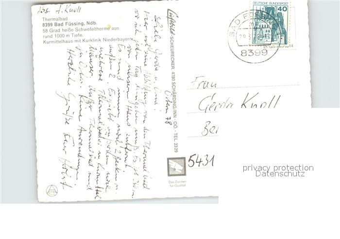 alte Postkarte Bad Fuessing Fliegeraufnahme Thermalbad postalisch gelaufen Erhaltung siehe scans